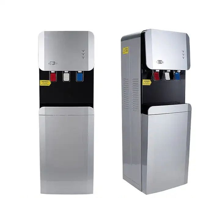 1- Dozatorul de apa 105 L-XGJ negru-argintiu este o soluție modernă și eficientă pentru furnizarea de apă purificată în birouri, locuințe și spații comerciale. Acest model funcționează prin conectarea directă la rețeaua de apă, eliminând necesitatea buteliilor și oferind o sursă constantă de apă filtrată și sigură pentru consum.